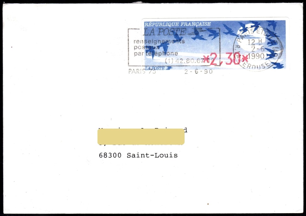Aufdruckfarbe rot: 2,30 auf Inlandsbrief - Rambouillet 2.6.1990 |