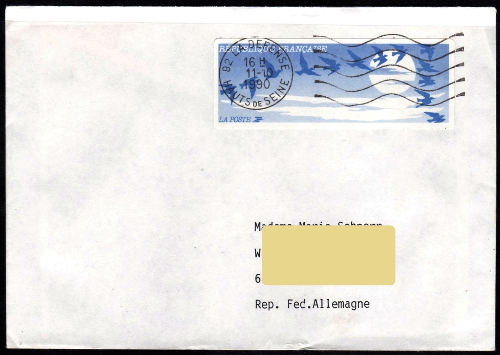 Leerfeld - blank label on letter La Defense 11.10.1990 to