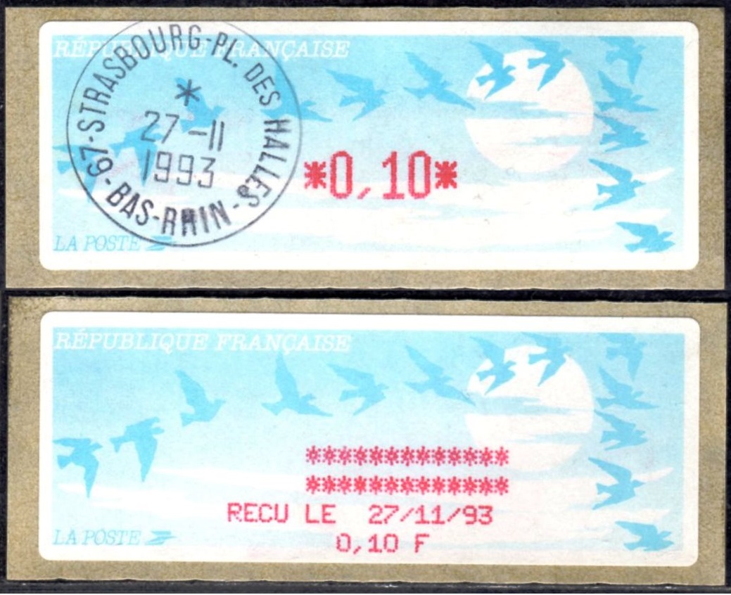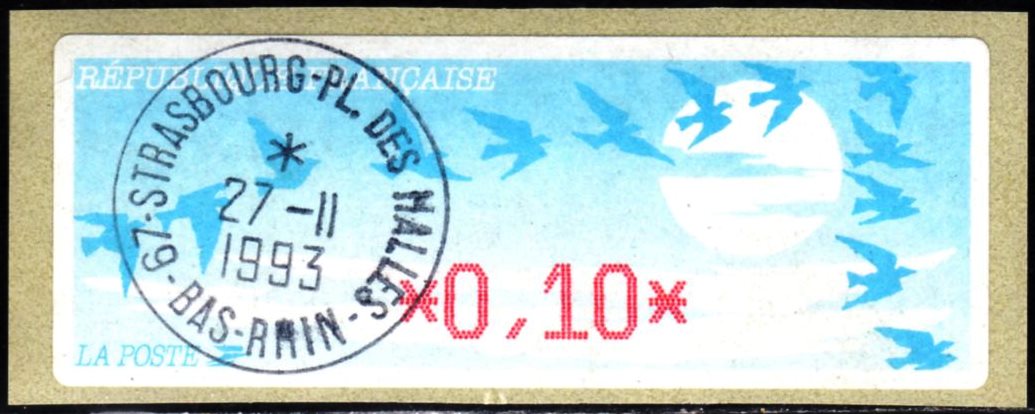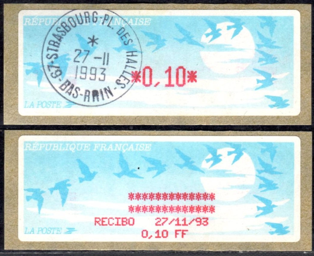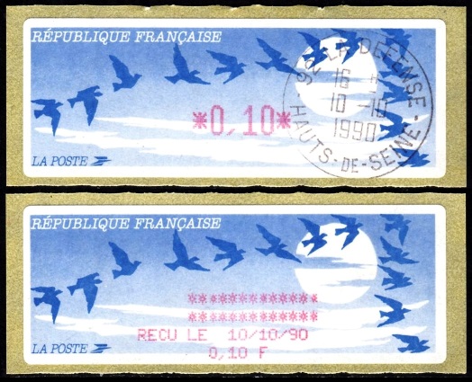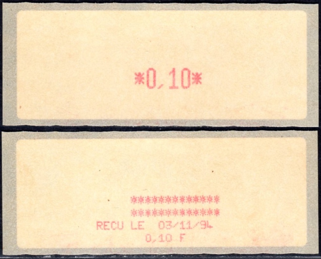 Aufdruckfarbe rot: 0,10 - La Defense 10.10.1990 + receipt |