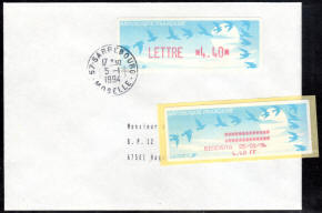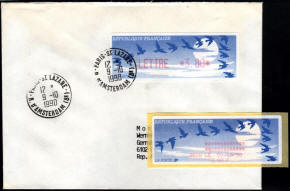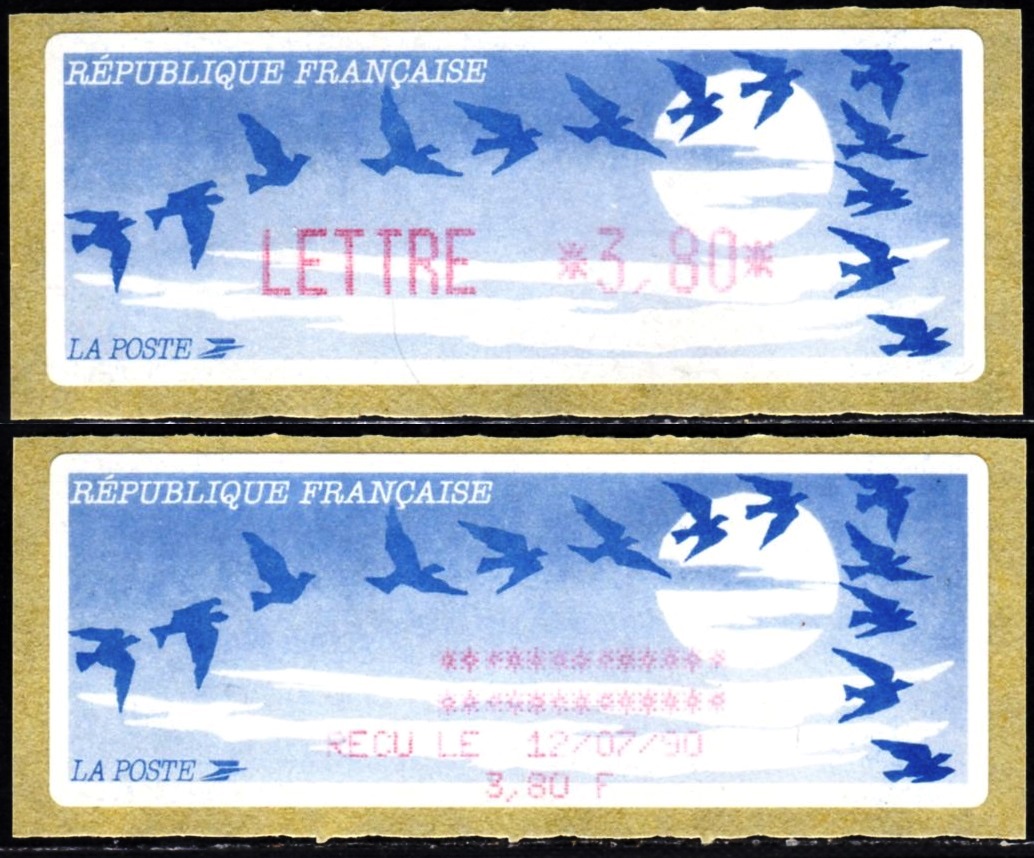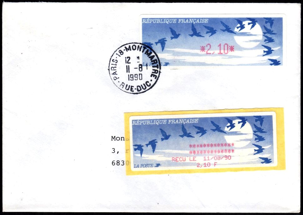 Aufdruckfarbe rot: LETTRE 3,80 + receipt 12.07.90 |