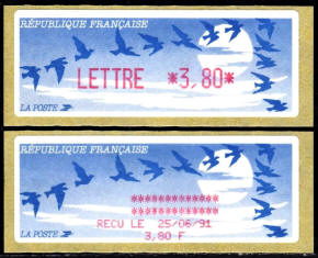 Aufdruckfarbe rot: LETTRE 3,80 + receipt 25.06.91 |