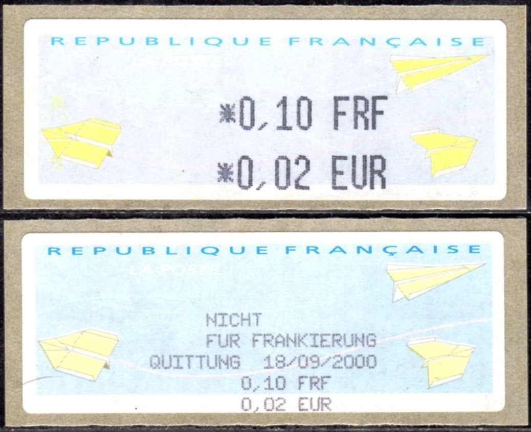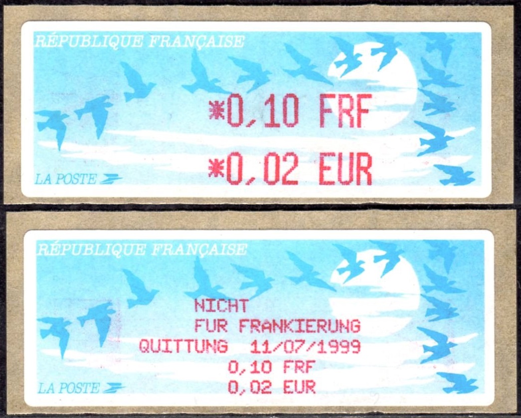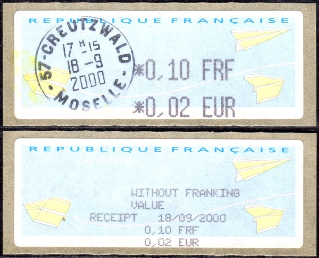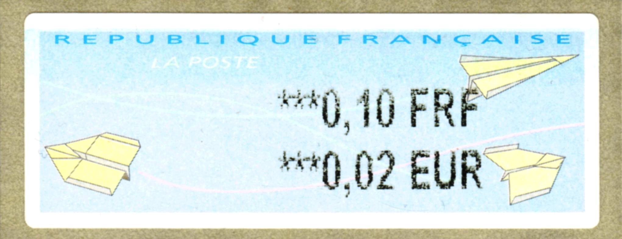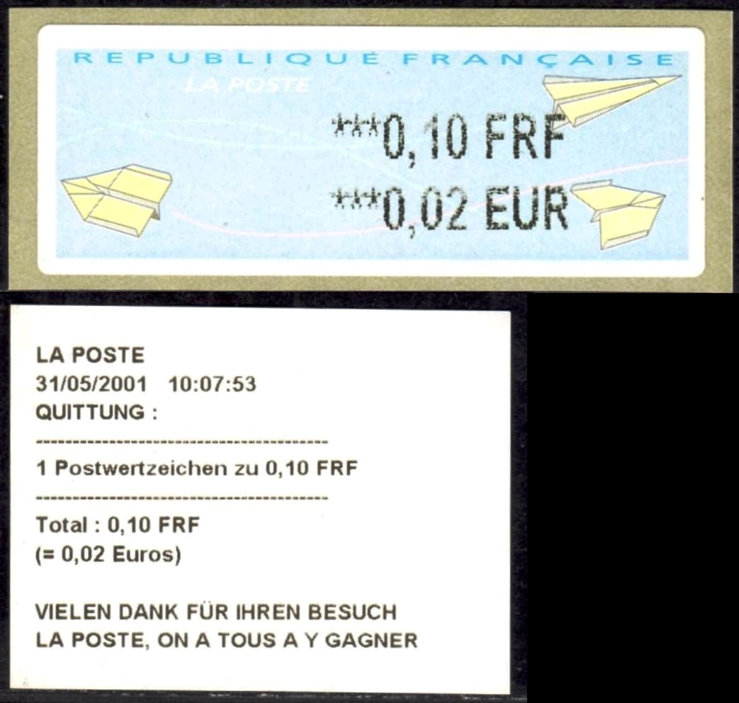 normal paper, Aufdruckfarbe schwarz: 0,10 FRF / 0,02 EUR + receipt
