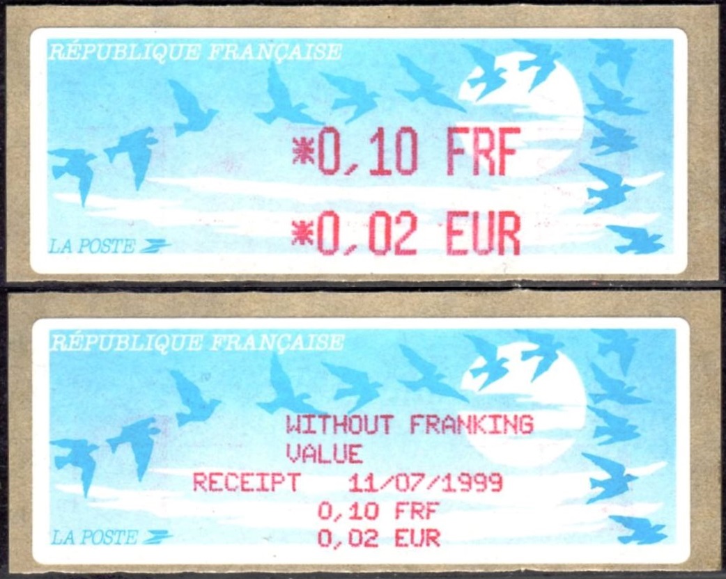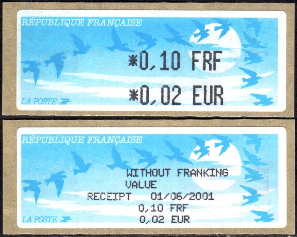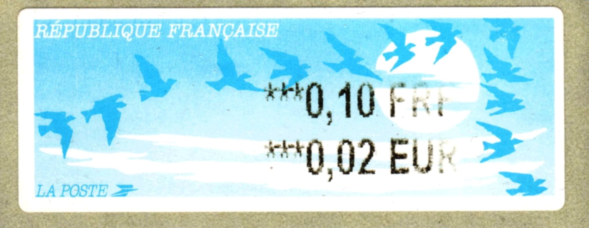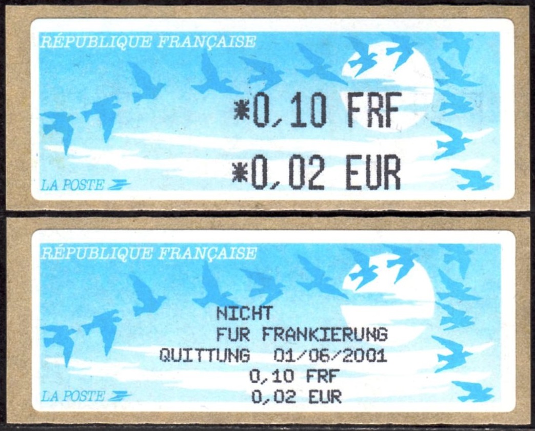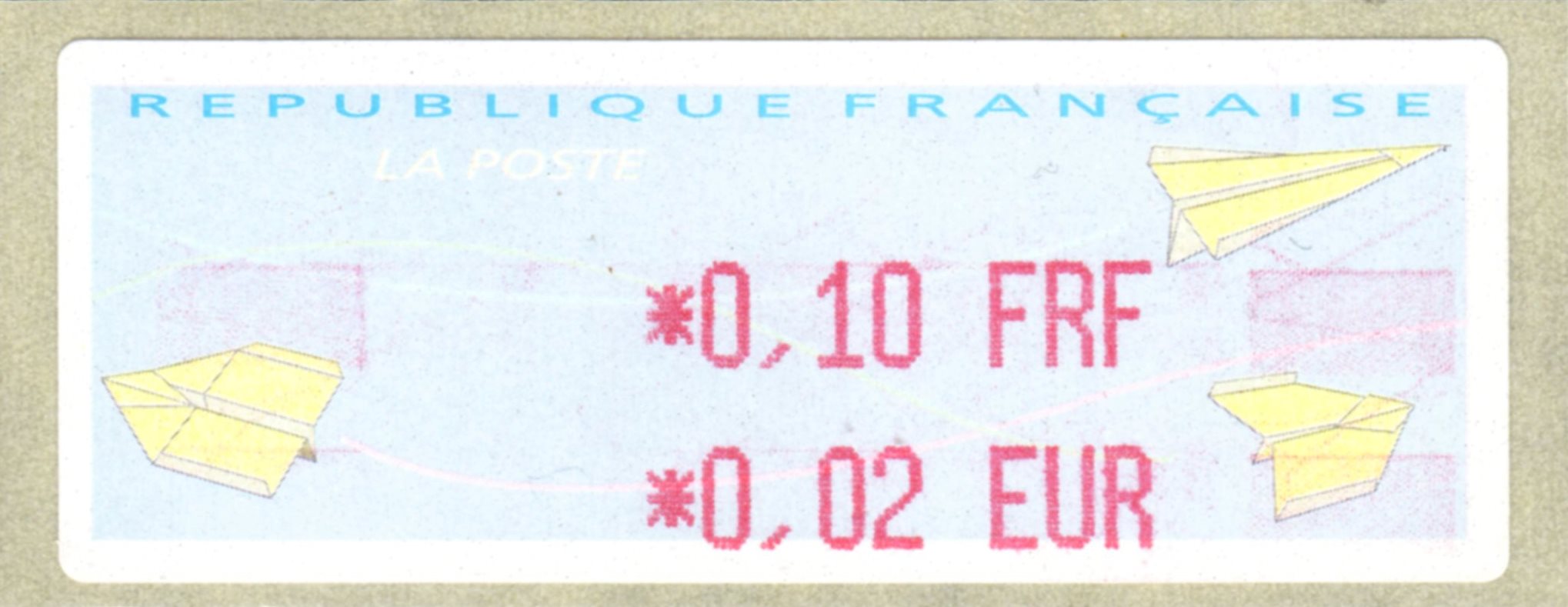 normal paper, Aufdruckfarbe schwarz: 0,10 FRF / 0,02 EUR + receipt