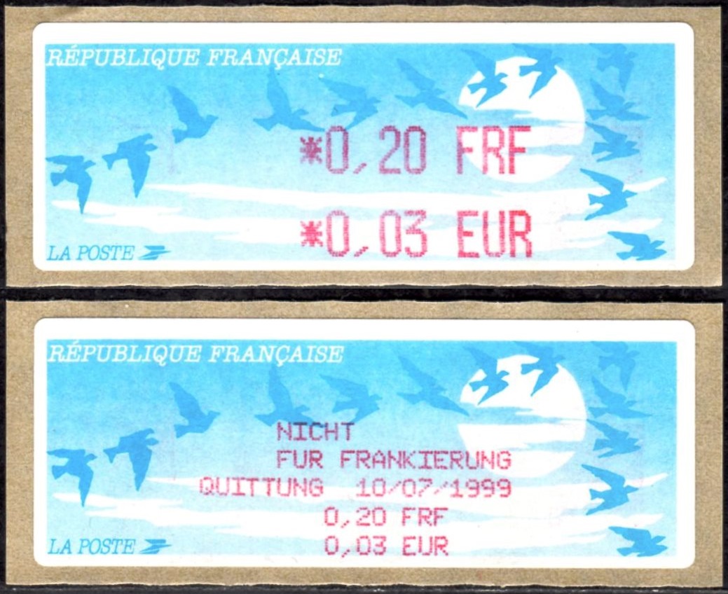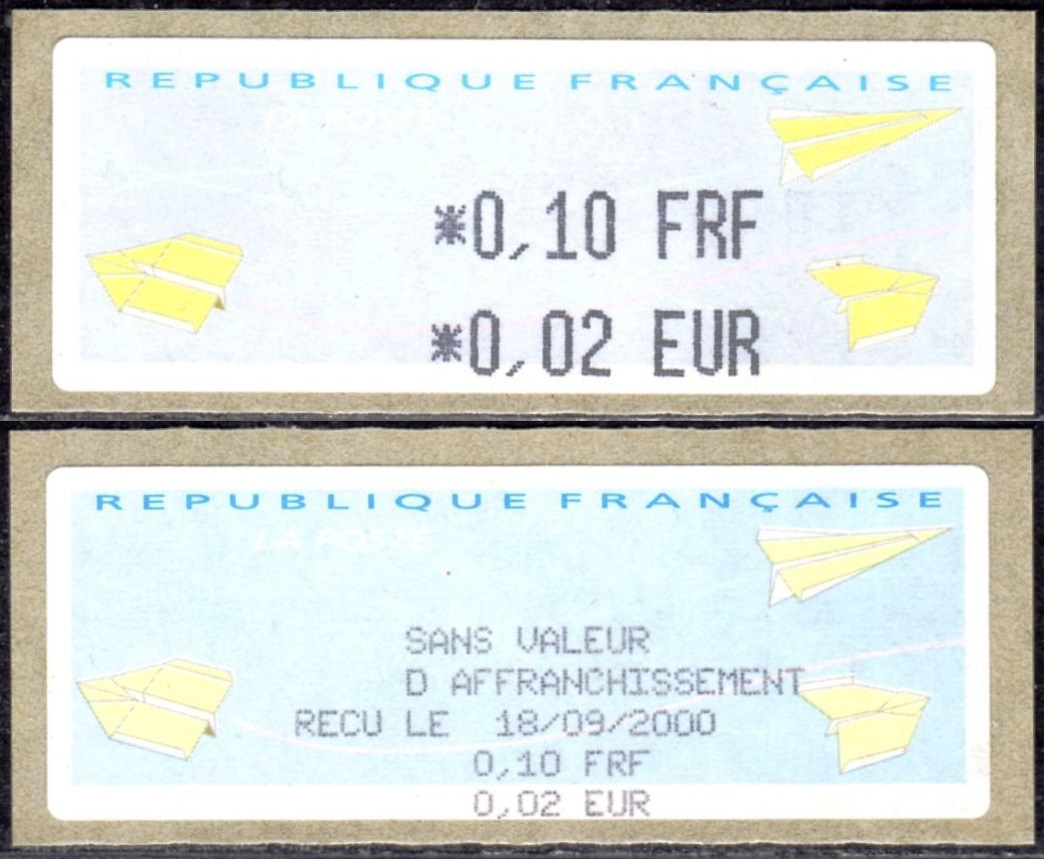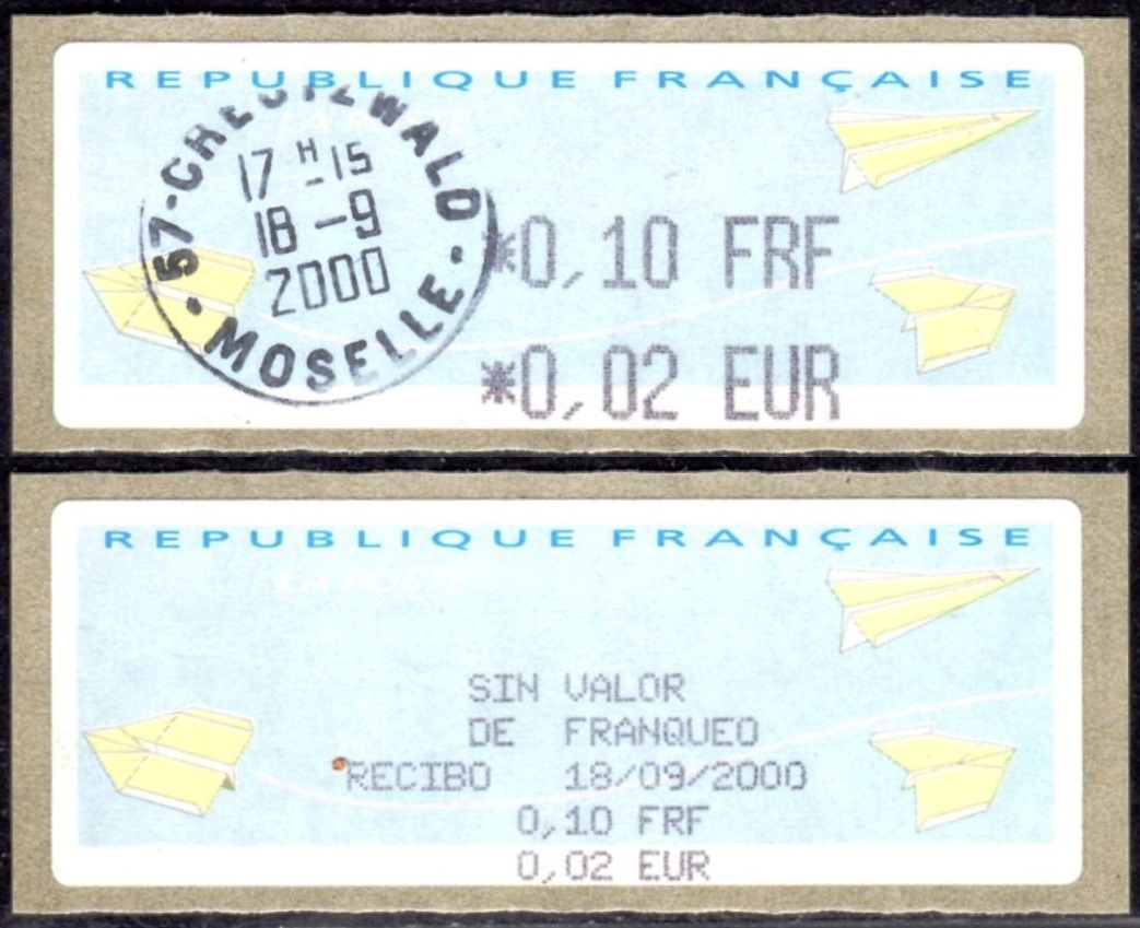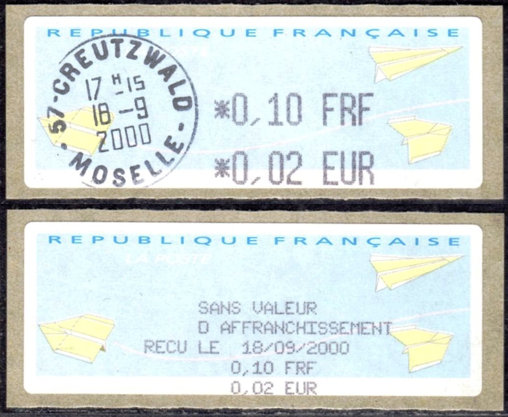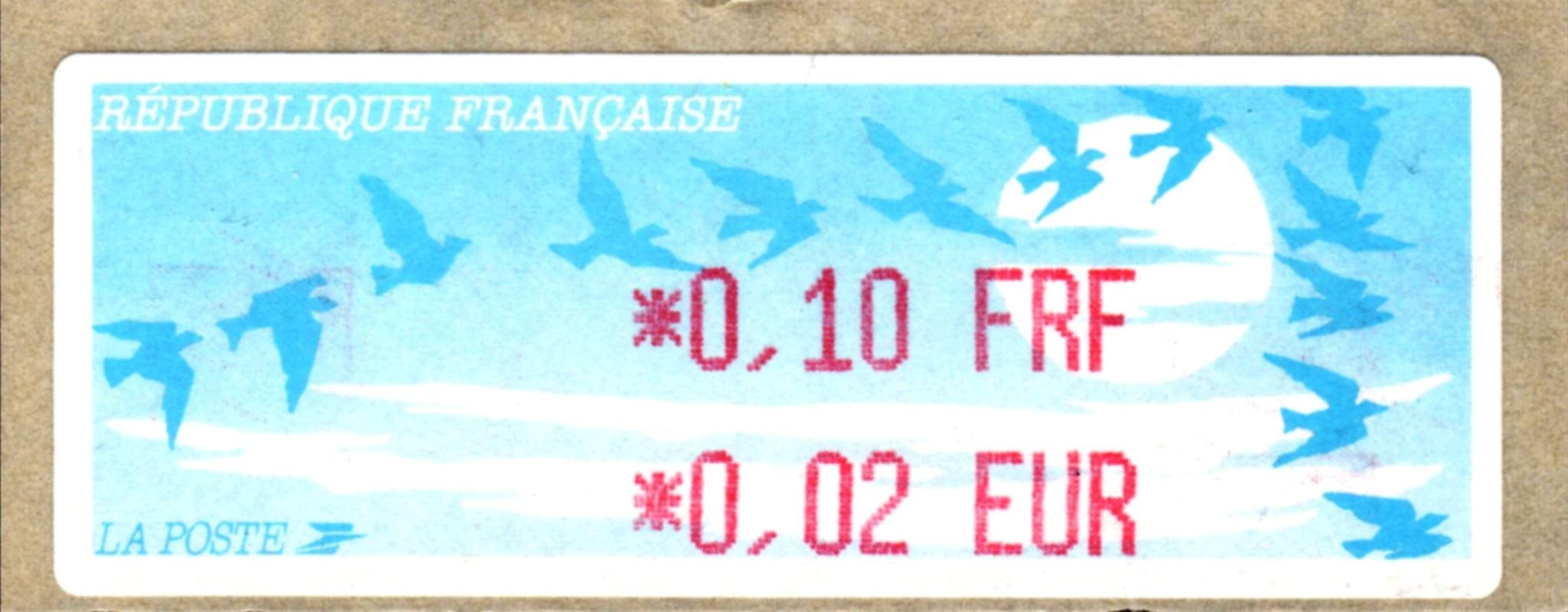 normal paper, Aufdruckfarbe schwarz: 0,10 FRF / 0,02 EUR + receipt
