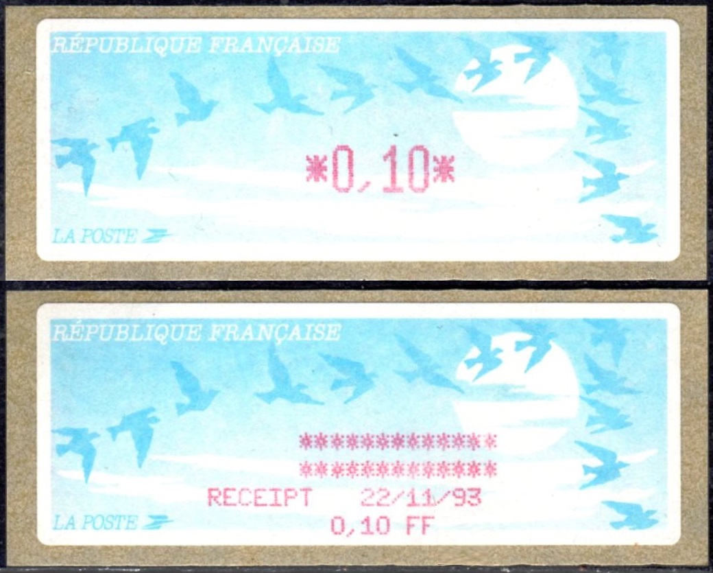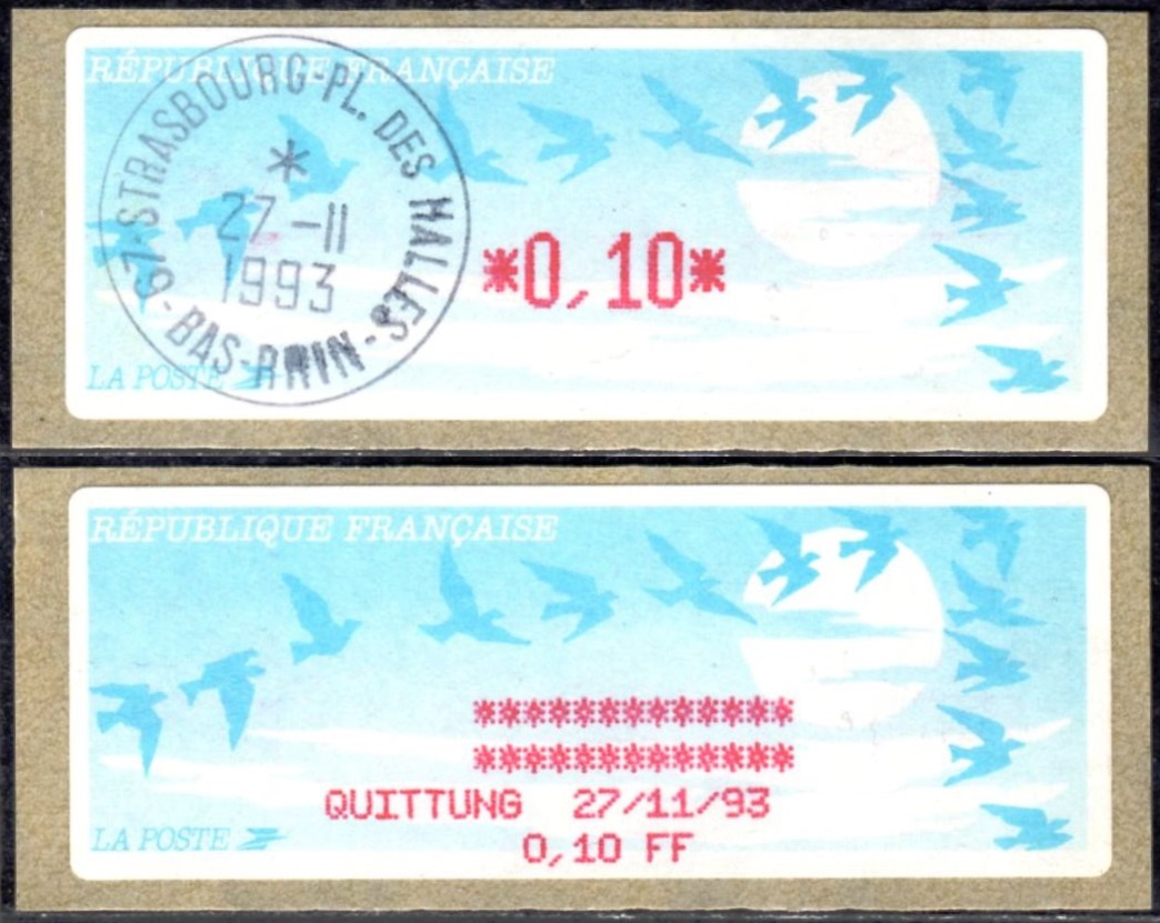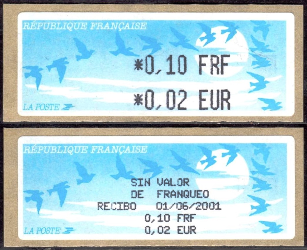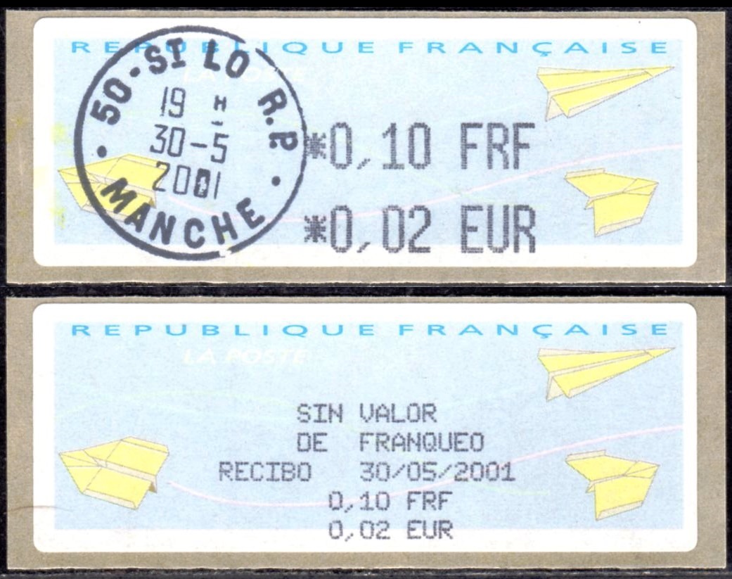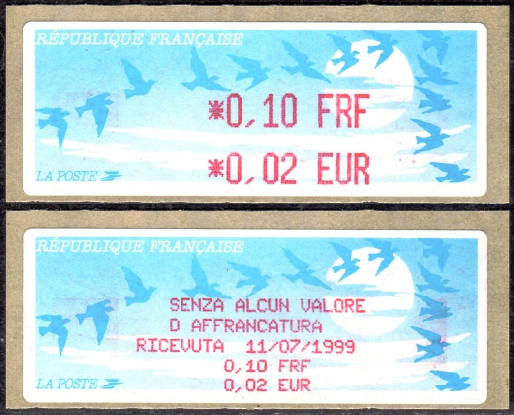 normal paper, Aufdruckfarbe schwarz: 0,10 FRF / 0,02 EUR + receipt