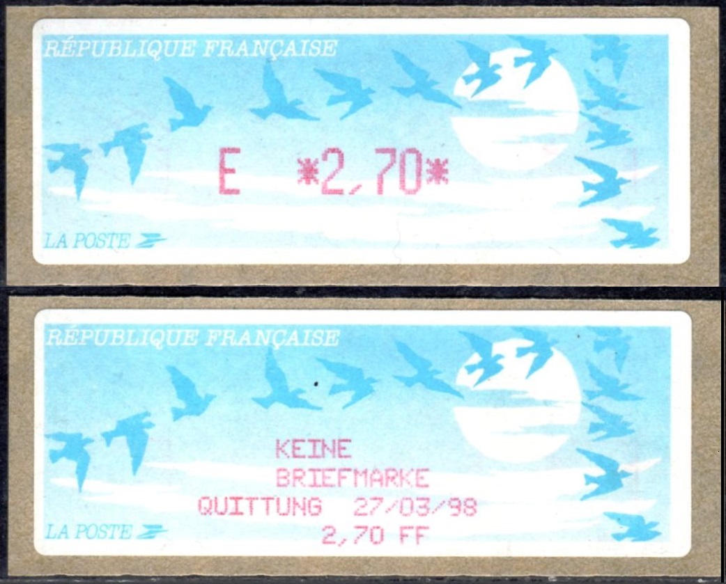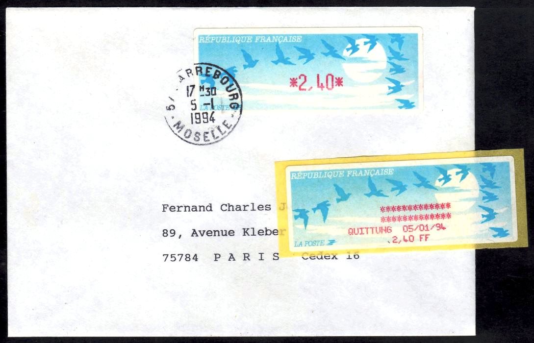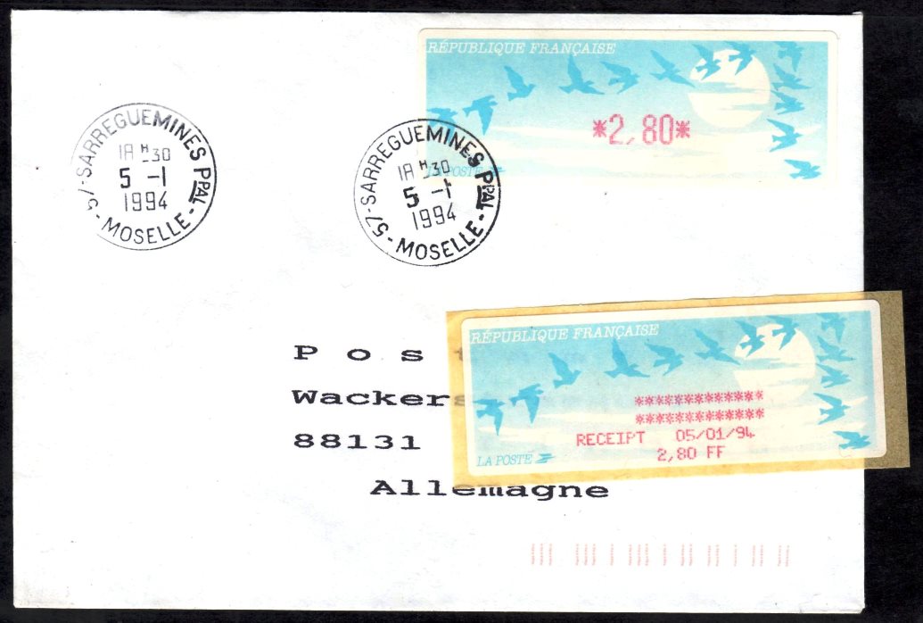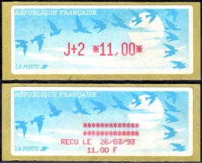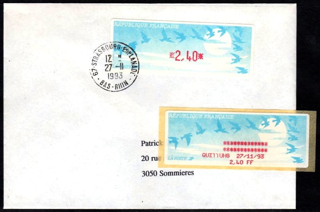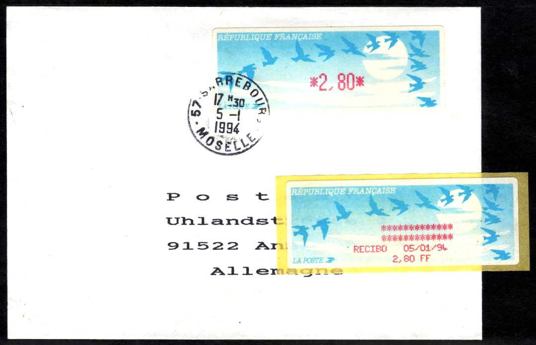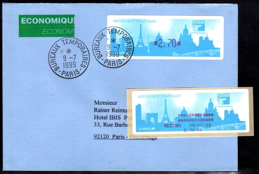 J+1R 19,50 FRF/ 2,97 EUR, J+2N 19,50 FRF/ 2,97 EUR + seven receipts in German |