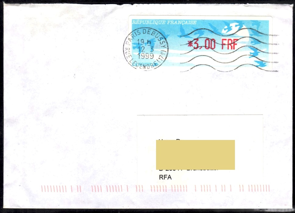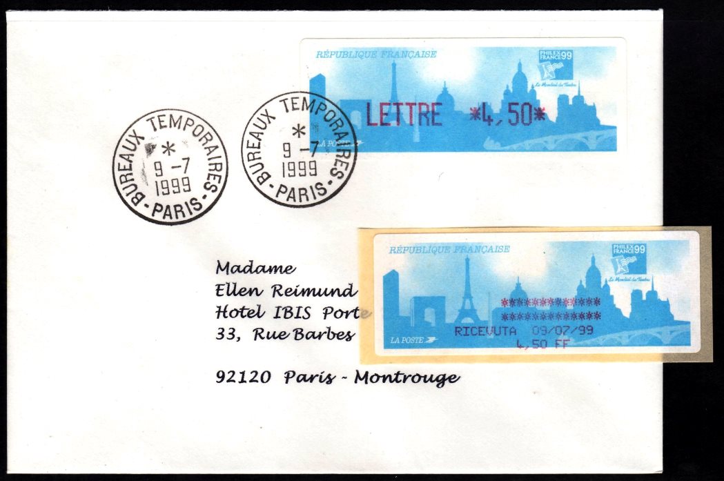 PRIO Letter 3,00 FRF / 0,46 EUR to Germany - Paris 9.7.1999 + receipt in