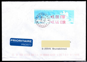 normal paper, Aufdruckfarbe rot: 3,00 FRF / 0,46 EUR on letter Forbach 8.2.1999