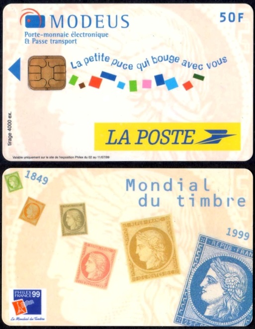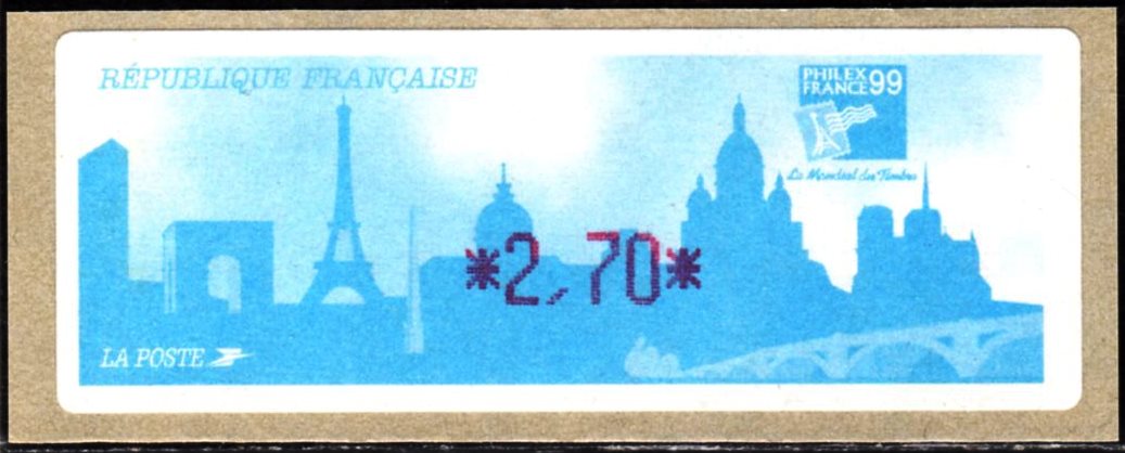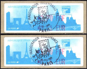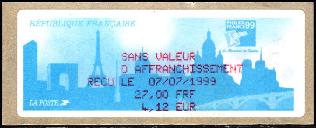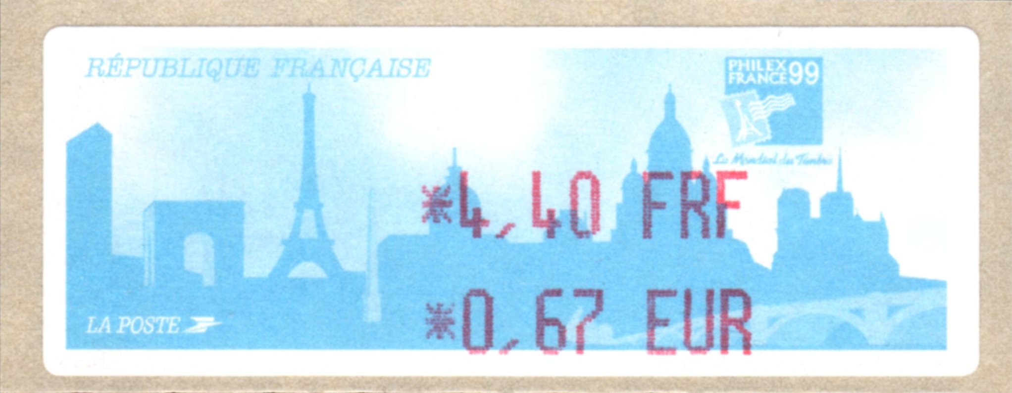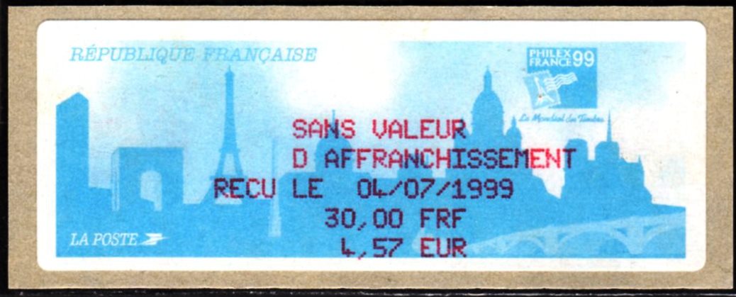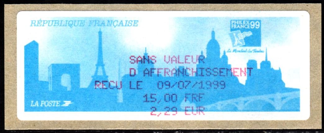 normal paper, Aufdruckfarbe rot: 0,20 FRF / 0,03 EUR + receipt 10.07.1999 in
