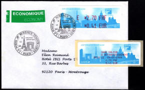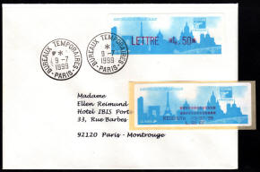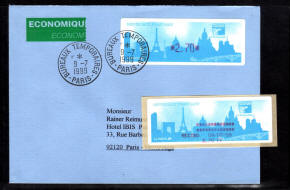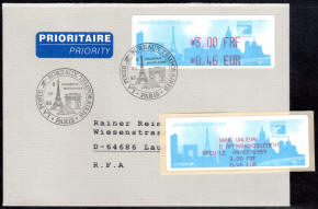 thermo sensitive paper, Aufdruckfarbe schwarz: 3,00 FRF / 0,46 EUR on letter Paris