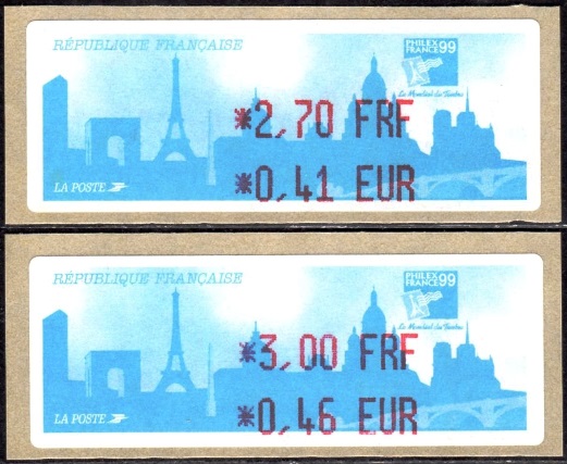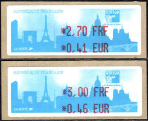 Satz - set TS1: 2,70 FRF/ 0,41 EUR, 3,00 FRF/ 0,46 EUR |