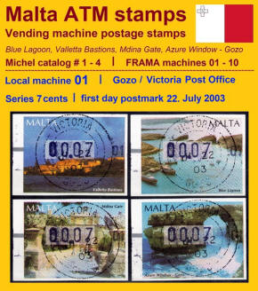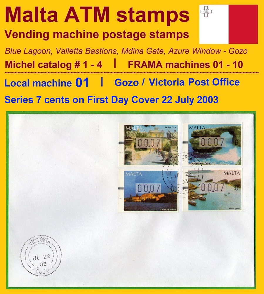 ATM 01 - serie 00.07 - FDC Victoria Gozo 22.07.2003 |