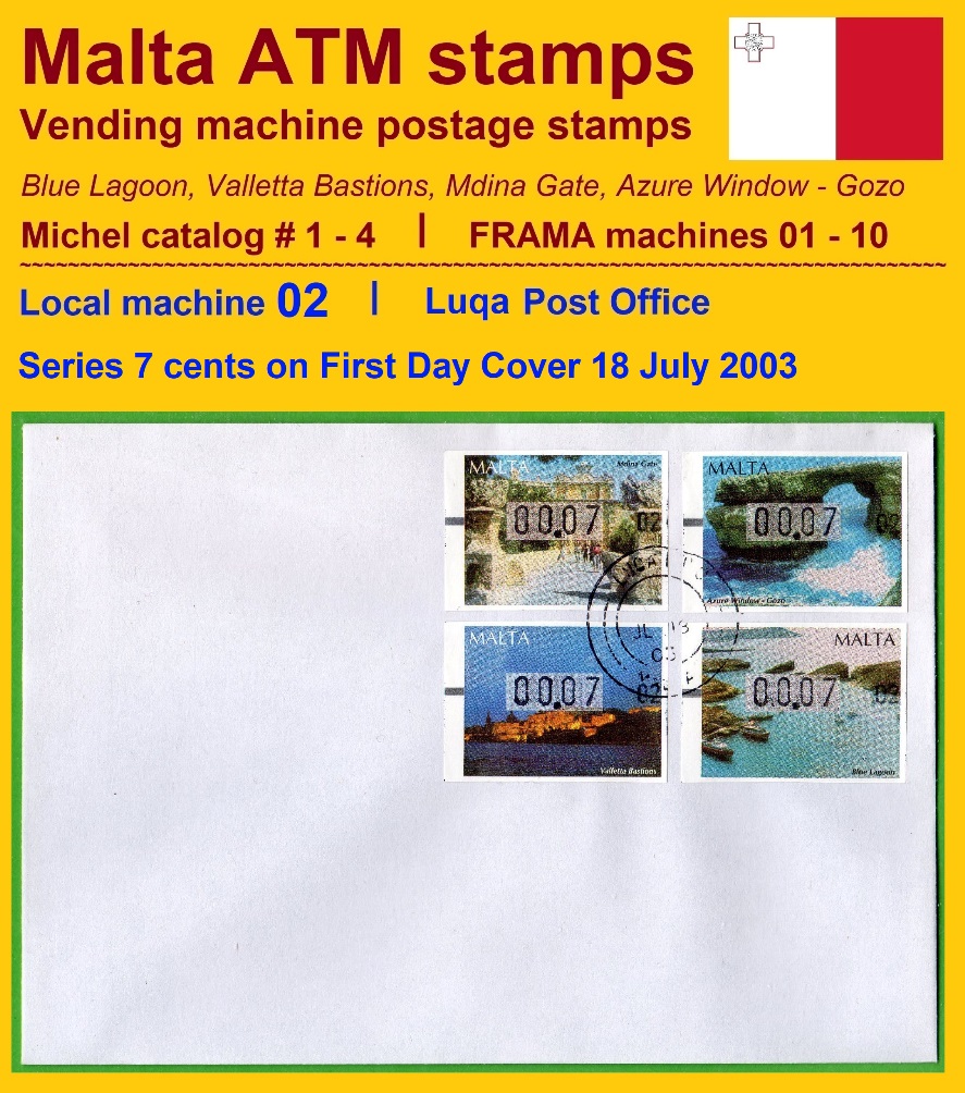 ATM 02 - serie 0.07 - FDC Luqa 18.07.2003 |