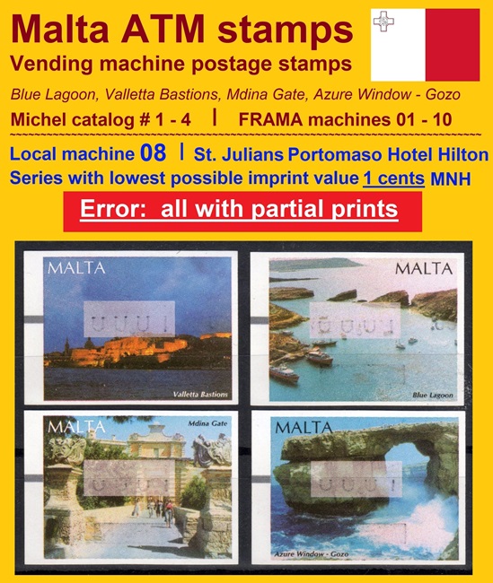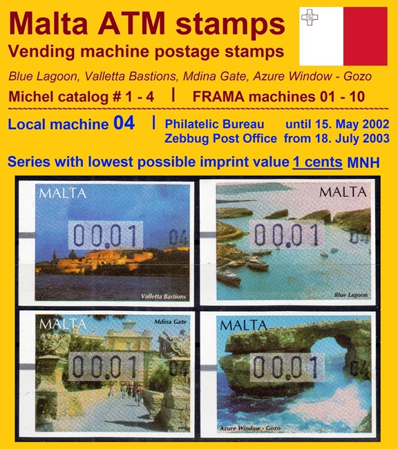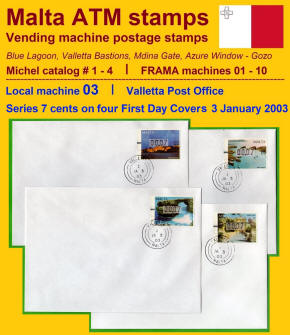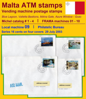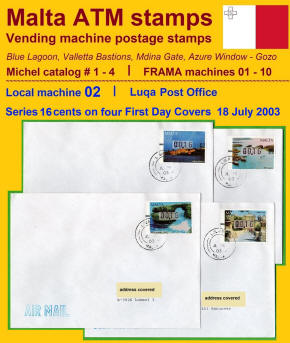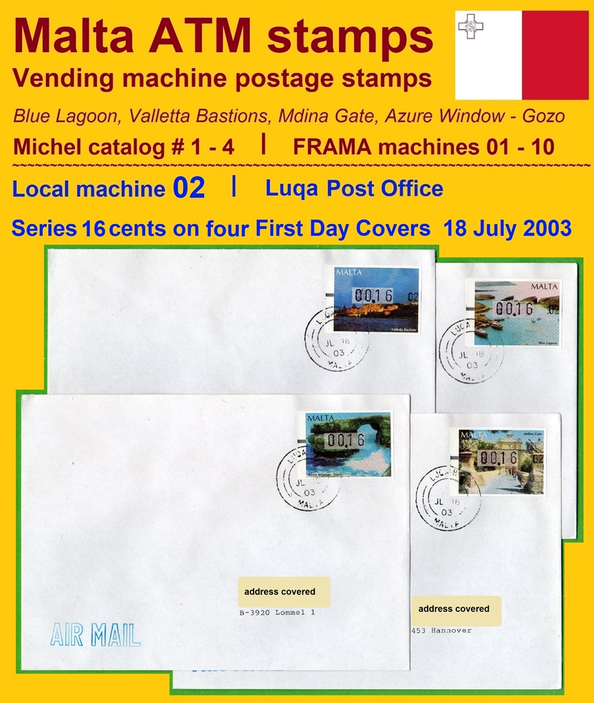 ATM 02 - serie 00.16 - 4x FDC Luqa 18.07.2003 |