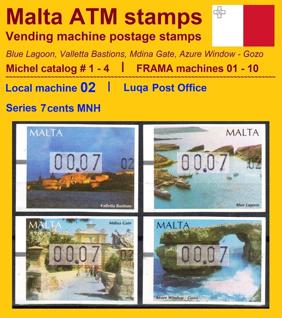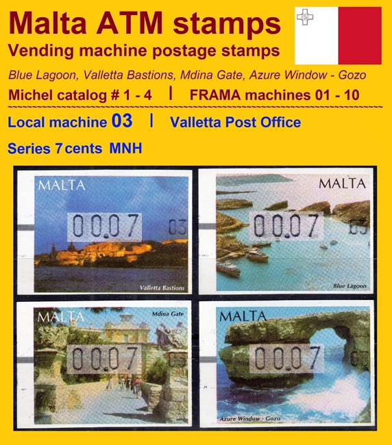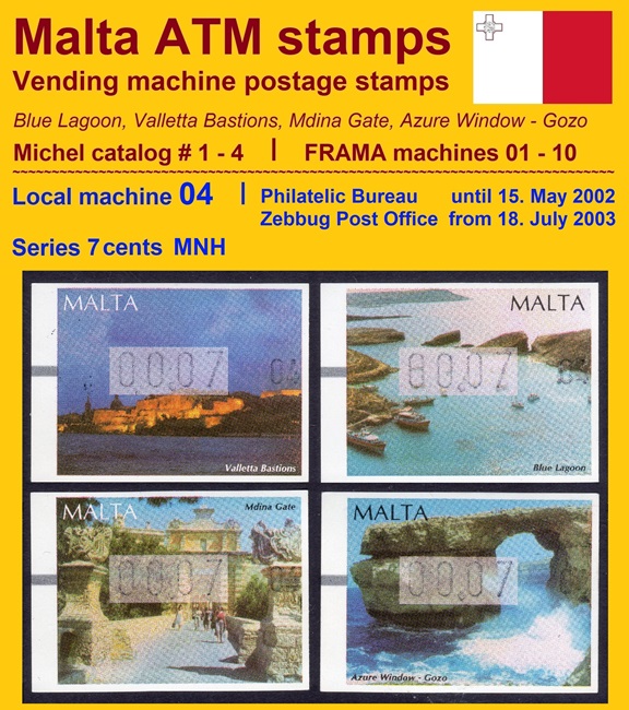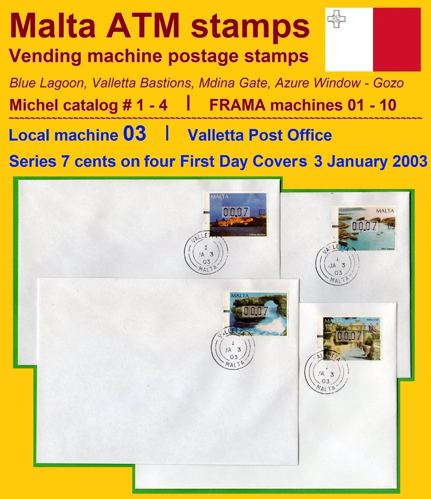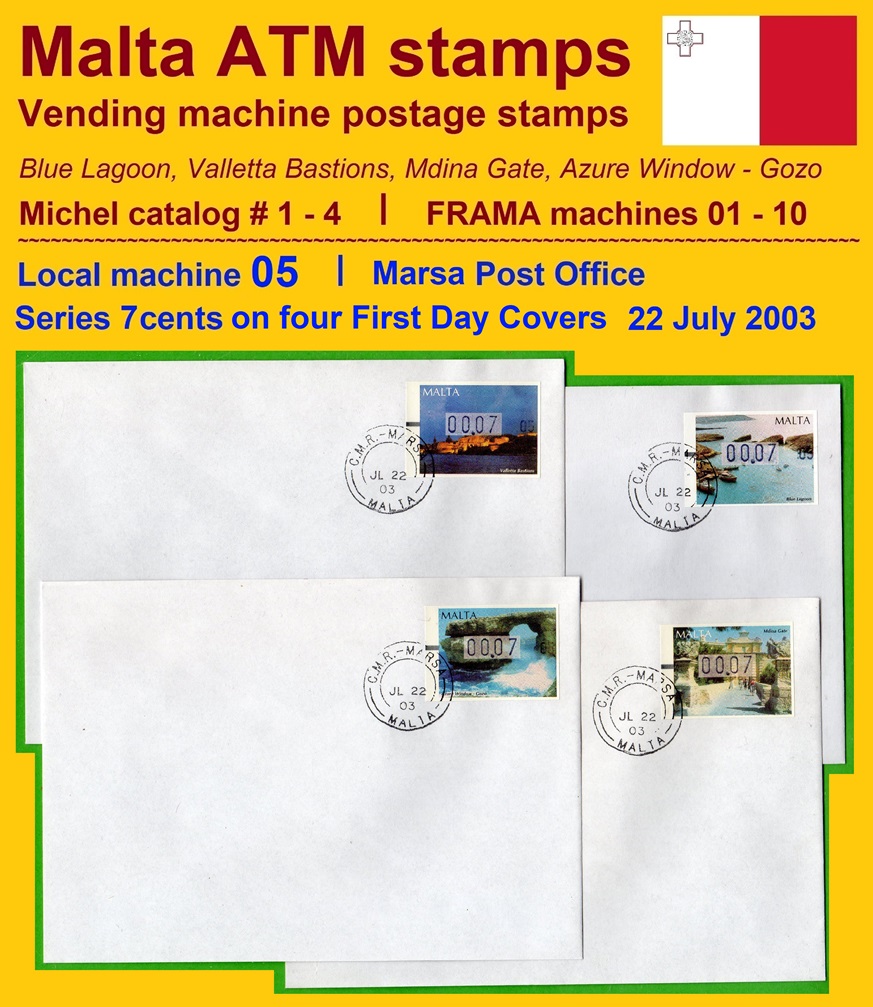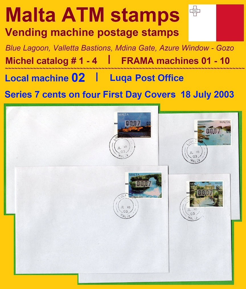 ATM 02 - serie 00.07 - 4x FDC Luqa 18.07.2003 |