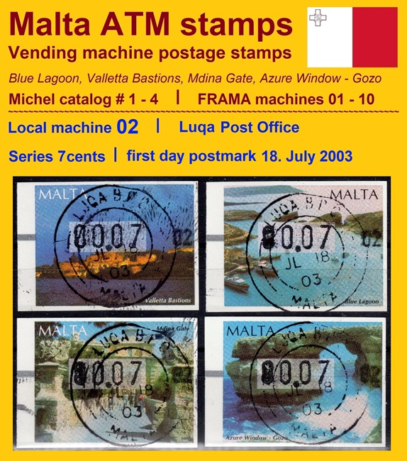 ATM 02 - serie 00.07 Ersttagsstempel - Luqa 18.07.2003 |
