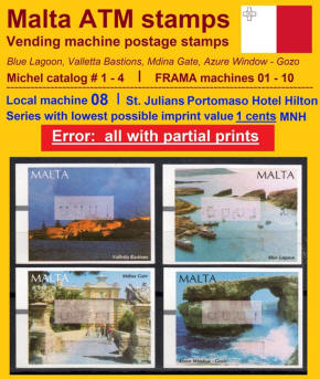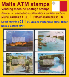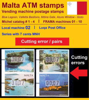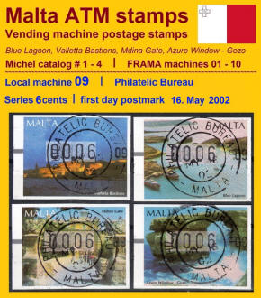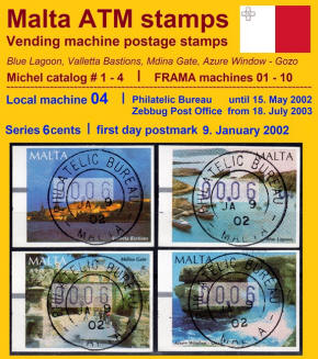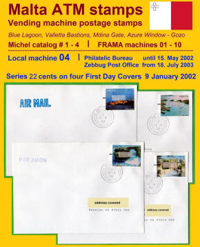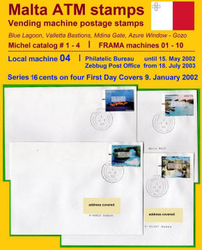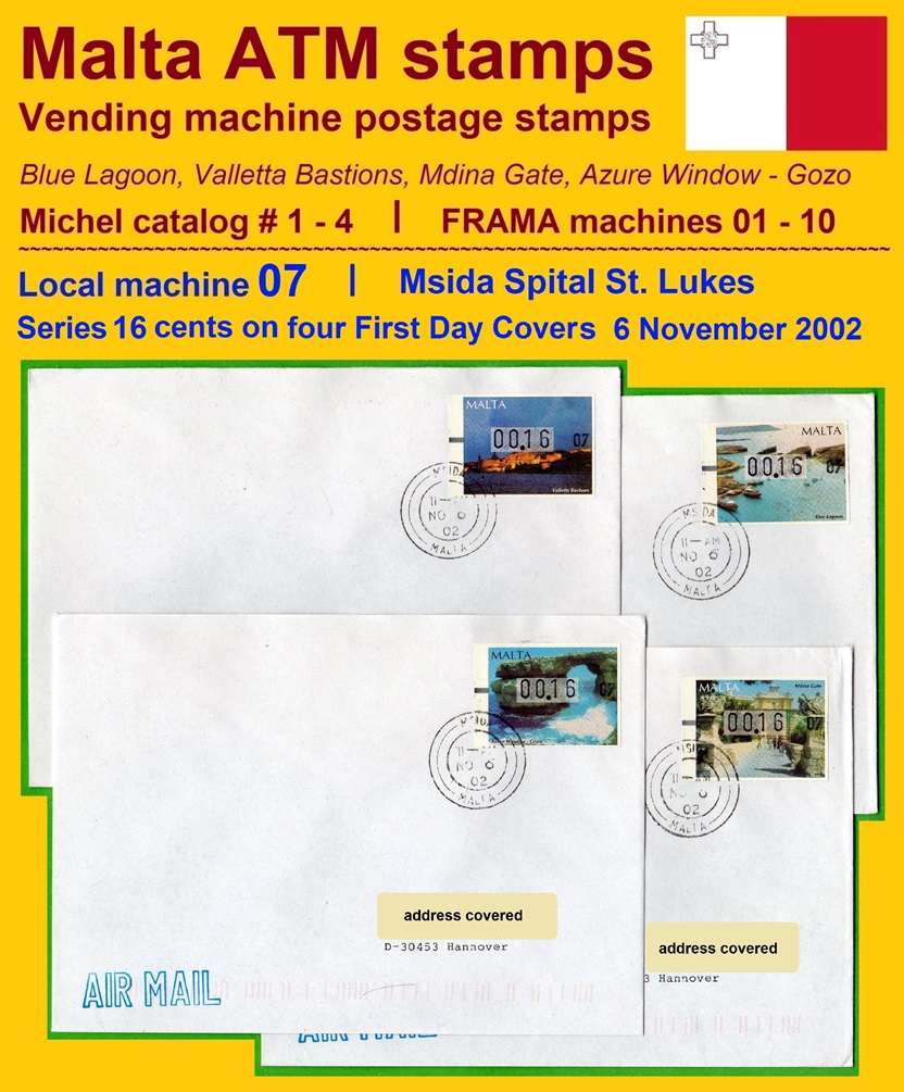 ATM 07 - serie 00.16 4x FDC - Msida 6.11.2002 |