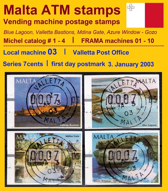 ATM 03 - serie 00.07 Ersttagsstempel - Valletta 03.01.2003 |