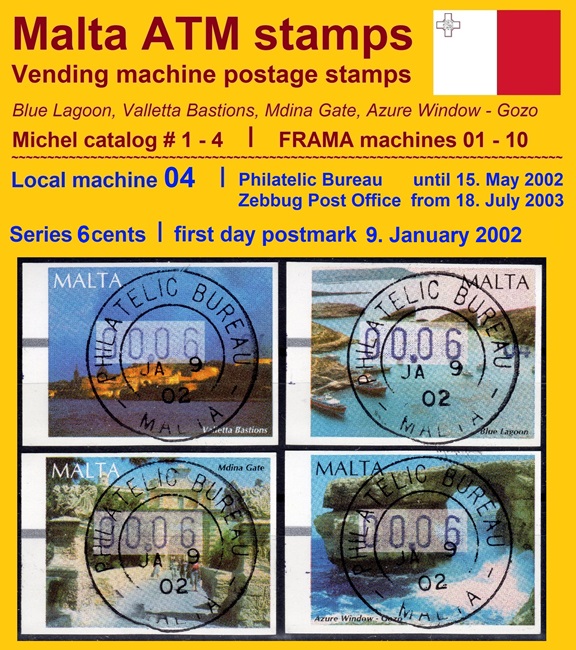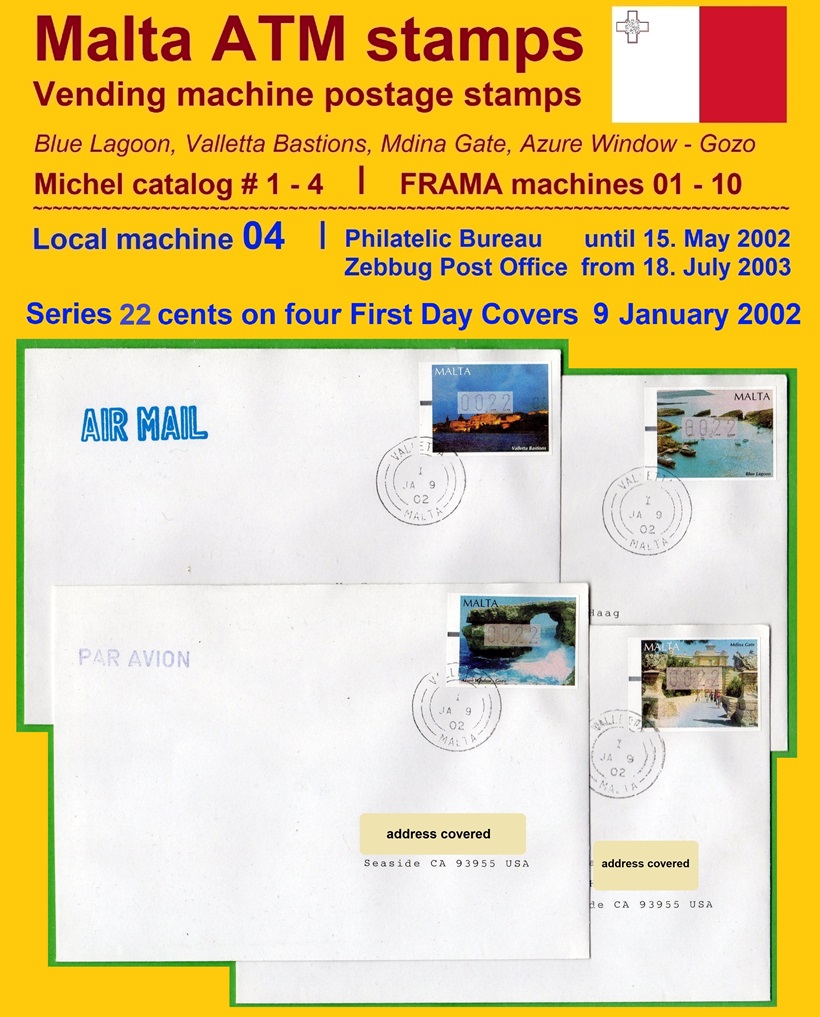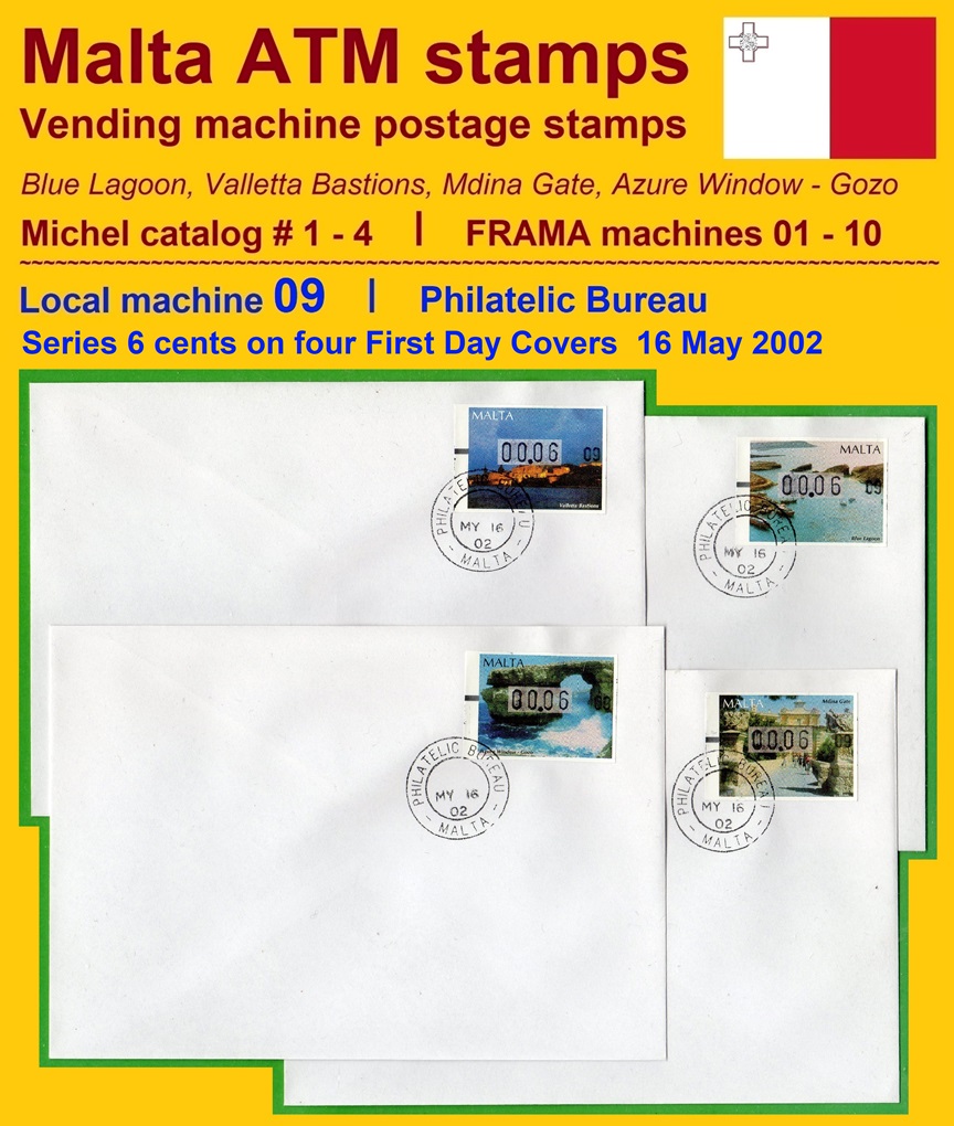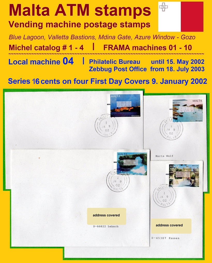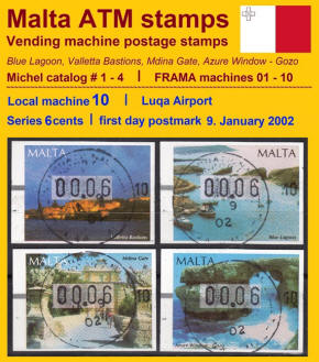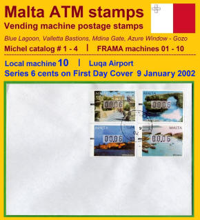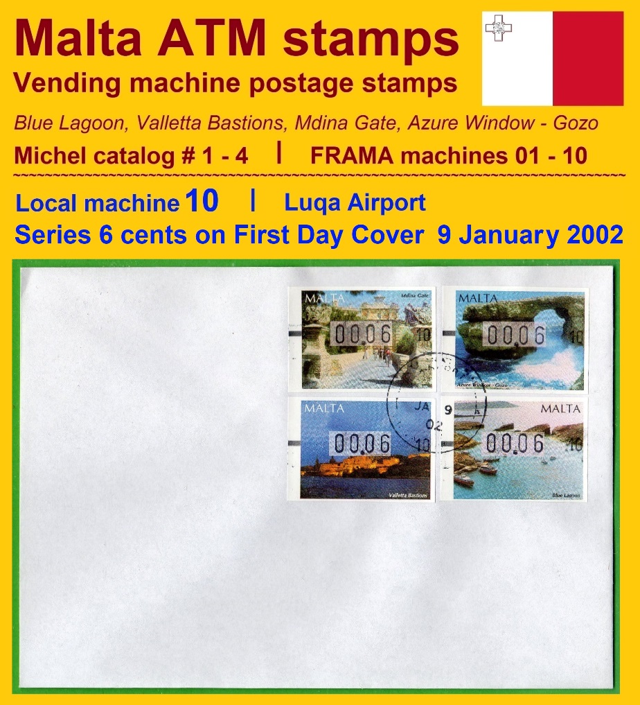 ATM 10 - serie 00.06 - 4x FDC - Luqa Airport 9.1.2002 |