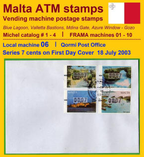 ATM 06 - serie 00.07 FDC - Qormi 18.7.2003 |