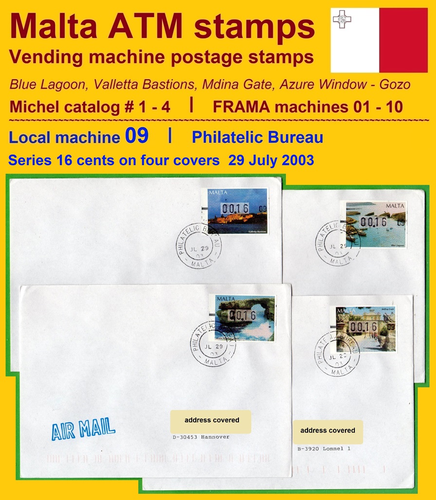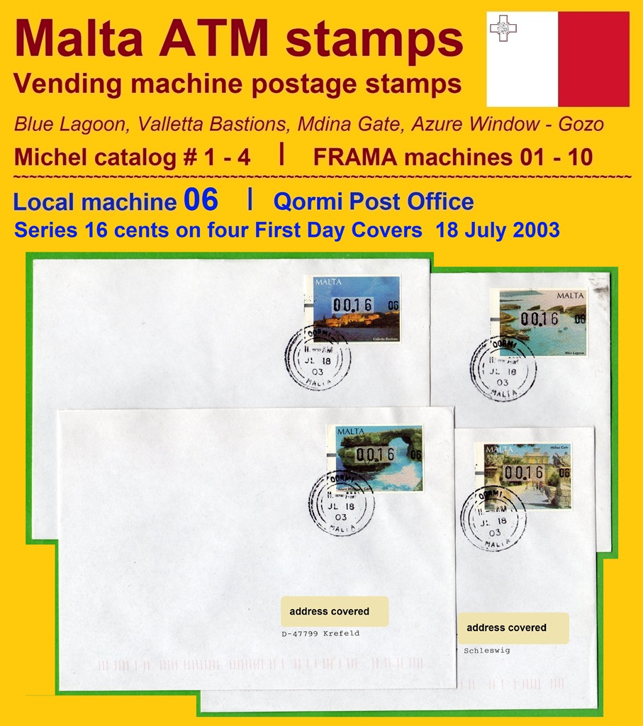 ATM 06 - serie 00.16 4x FDC - Qormi 18.7.2003 |