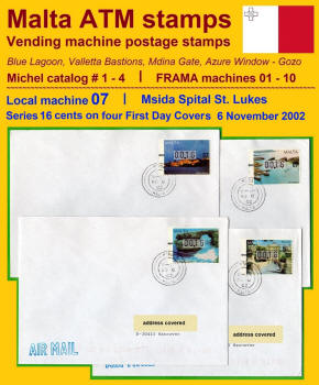 ATM 07 - serie 00.07 FDC - Msida 6.11.2002 |