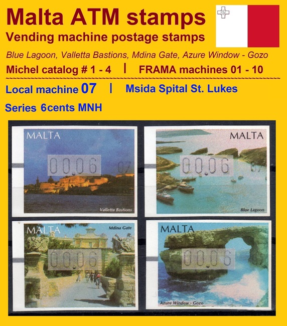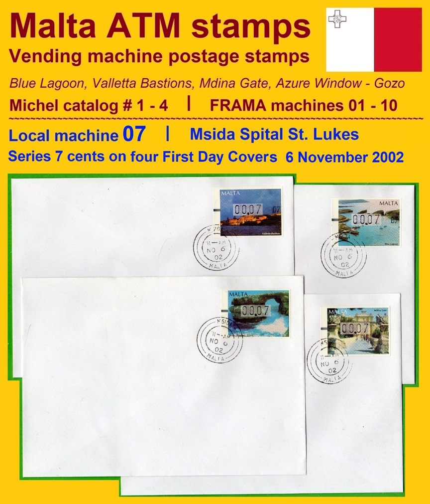 ATM 07 - serie 00.07 4x FDC - Msida 6.11.2002 |
