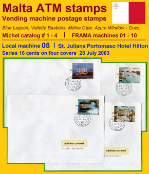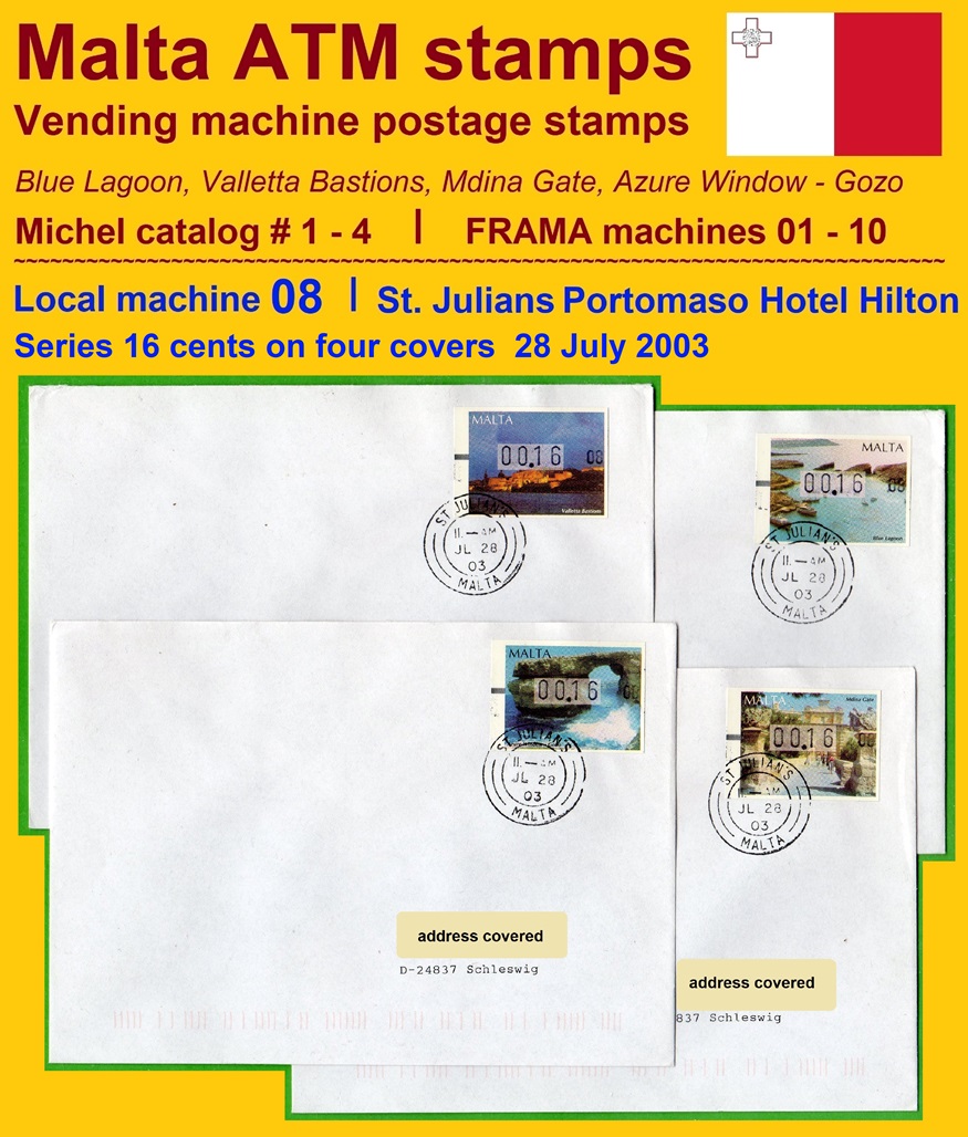 ATM 08 - serie 00.16 - 4x Briefe - St. Julians 28.7.2003 |
