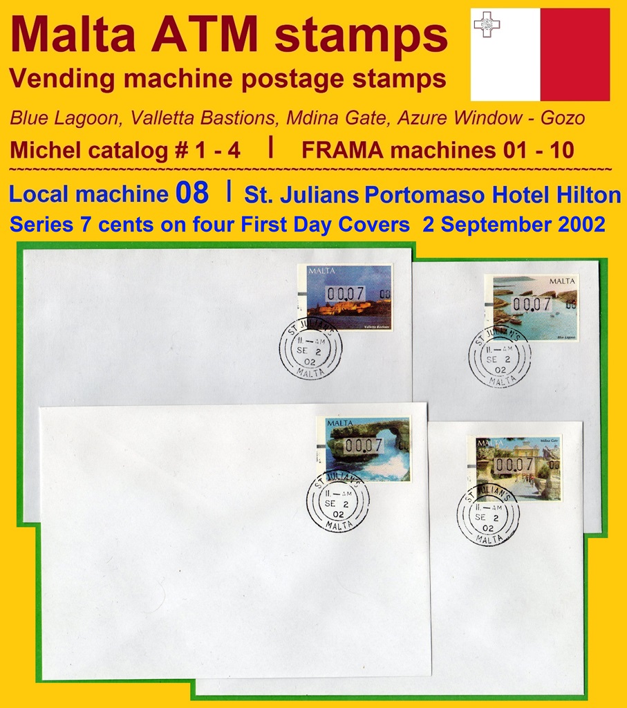 ATM 08 - serie 00.07 4x FDC - St. Julians 2.9.2002 |