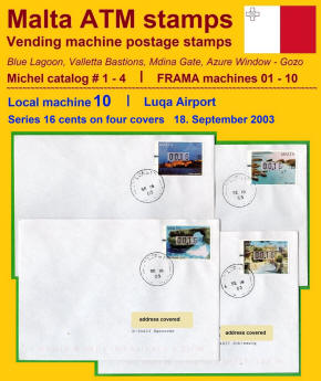 ATM 10 - serie 00.16 - 4x Briefe - Luqa Airport 18.9.2003 |
