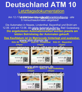 Komplette postfrische Letzttagsdokumentaion aller 5 Automaten in Köln