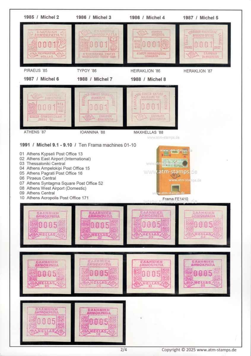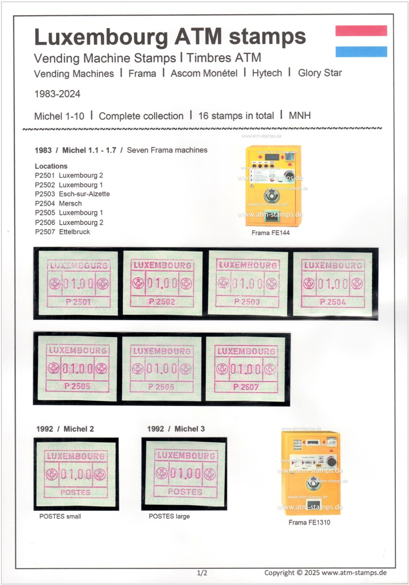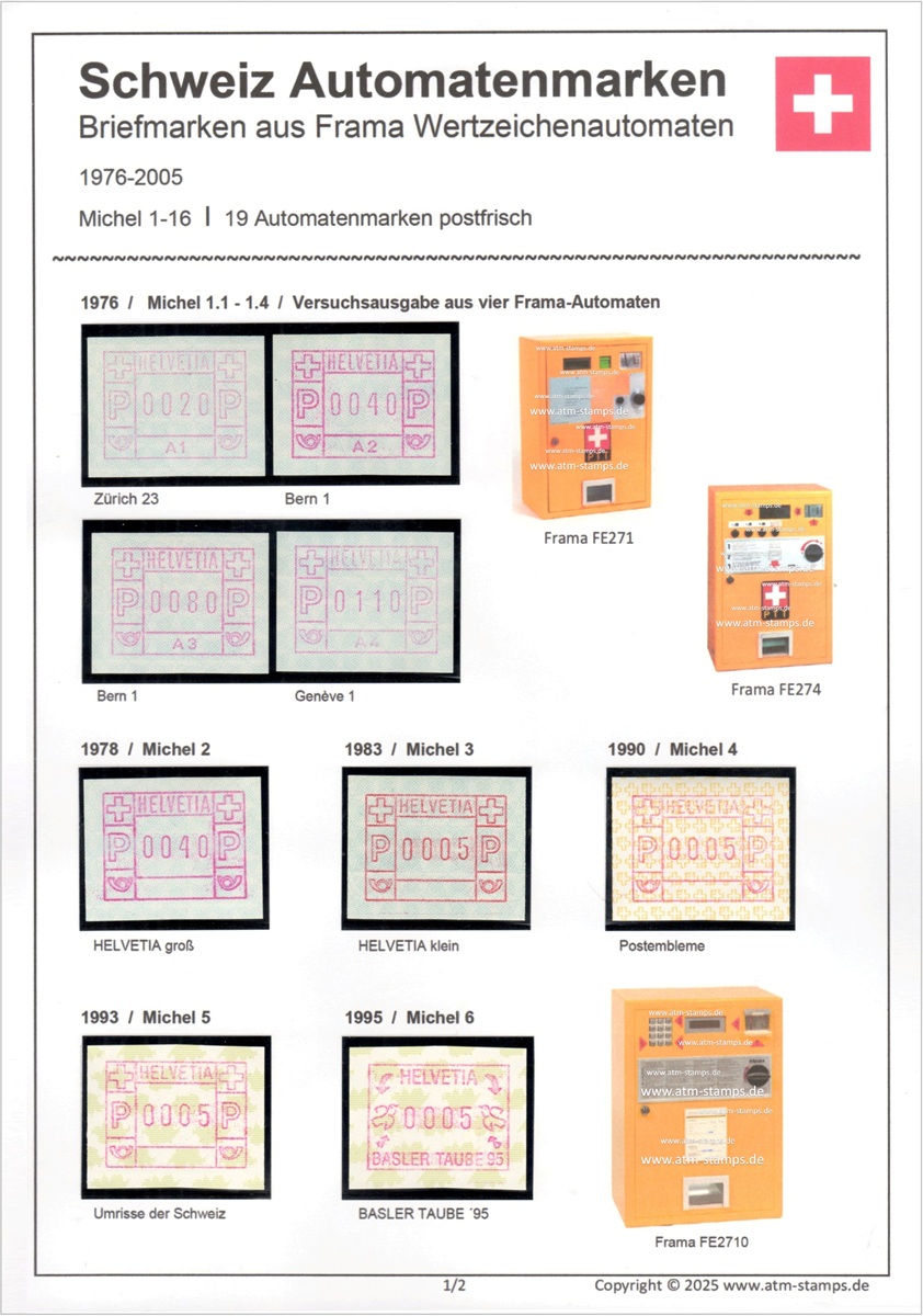 eingesetzten Klüssendorf- und Frama Wertzeichenautomaten. Die Marken