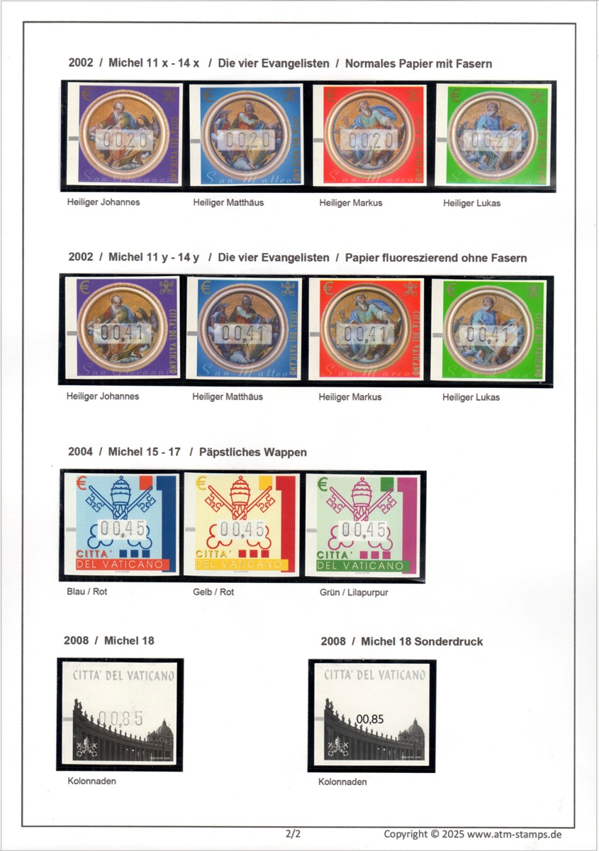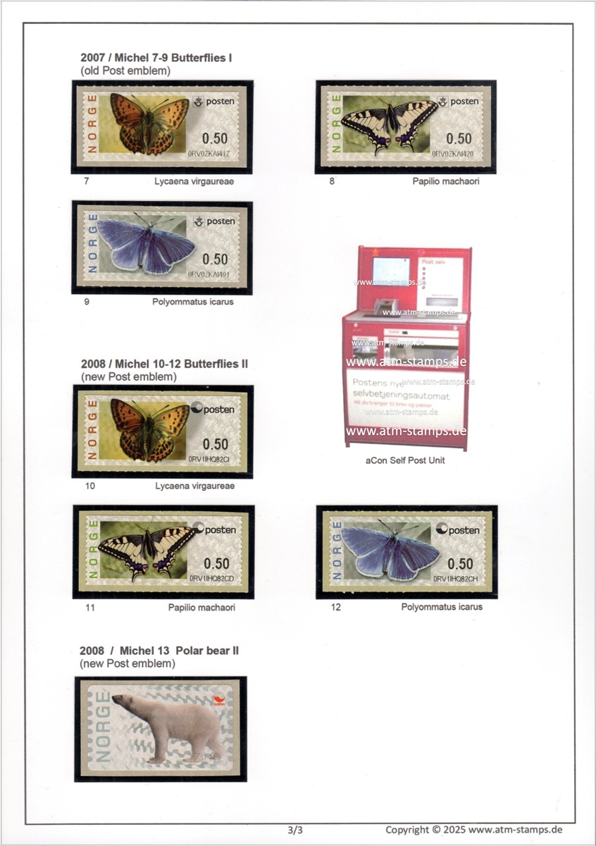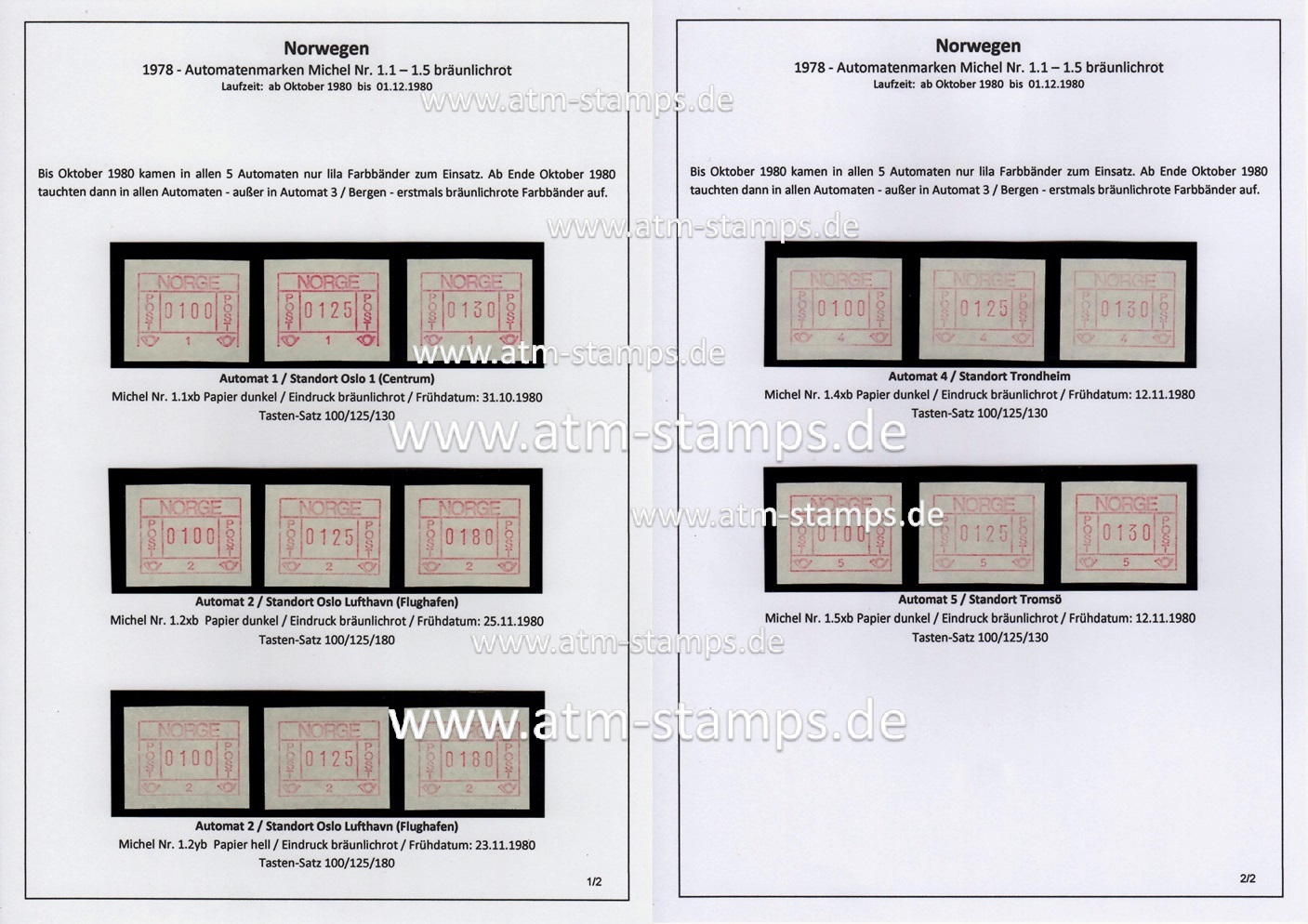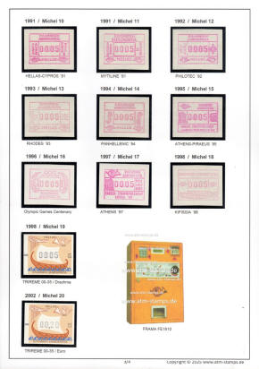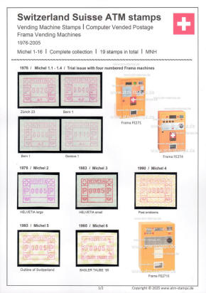 Unternummern auf vier A4 Albumblätter mit insgesamt 44 Automatenmarken