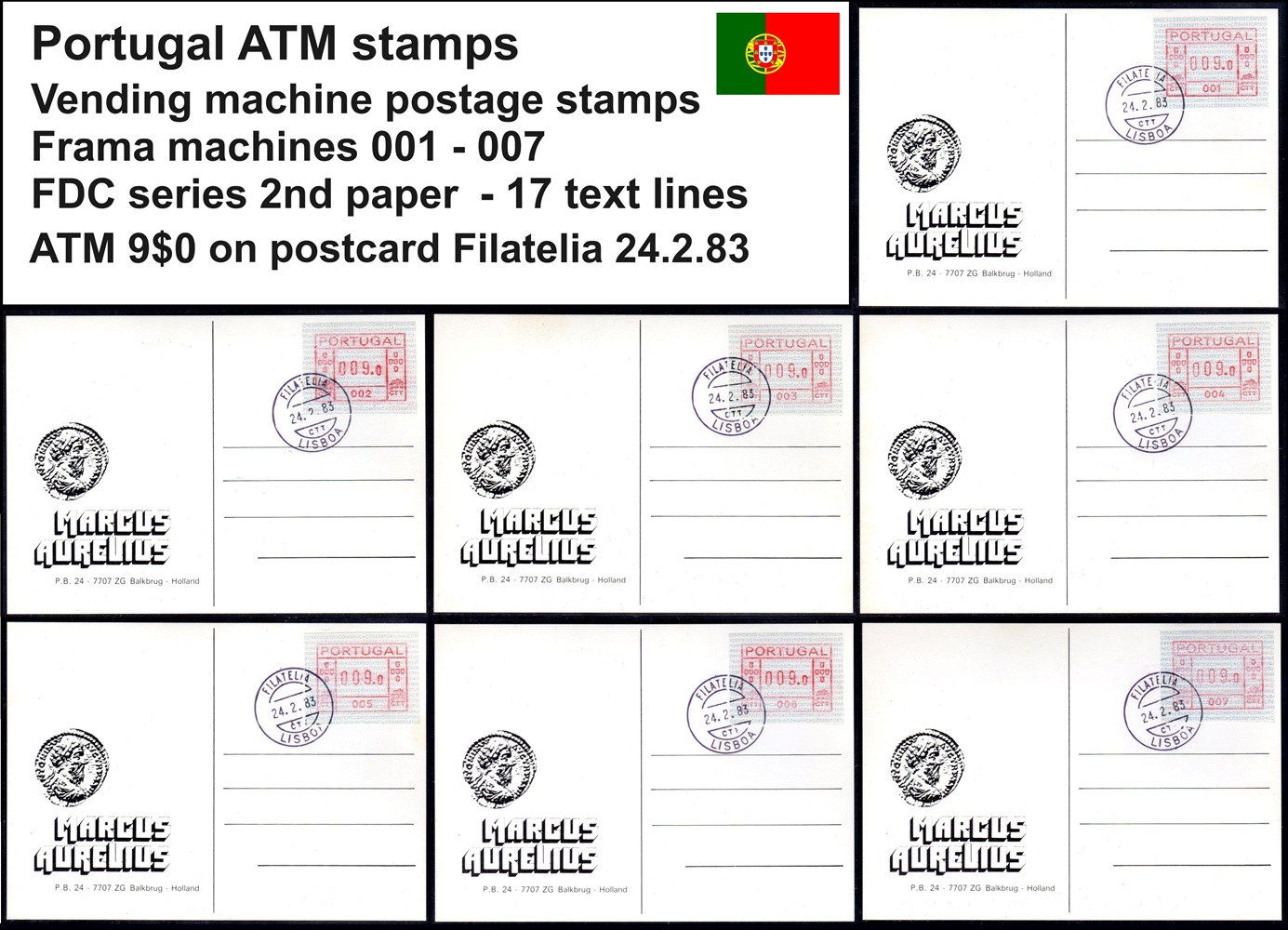 001-007 / 2.Papier / 9$0 als Einzelfrankaturen auf FDC Postkarten