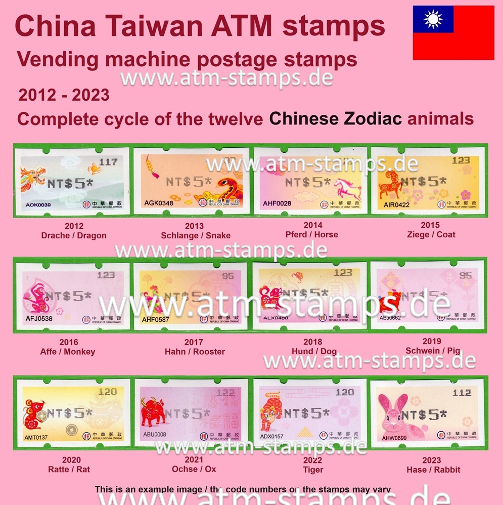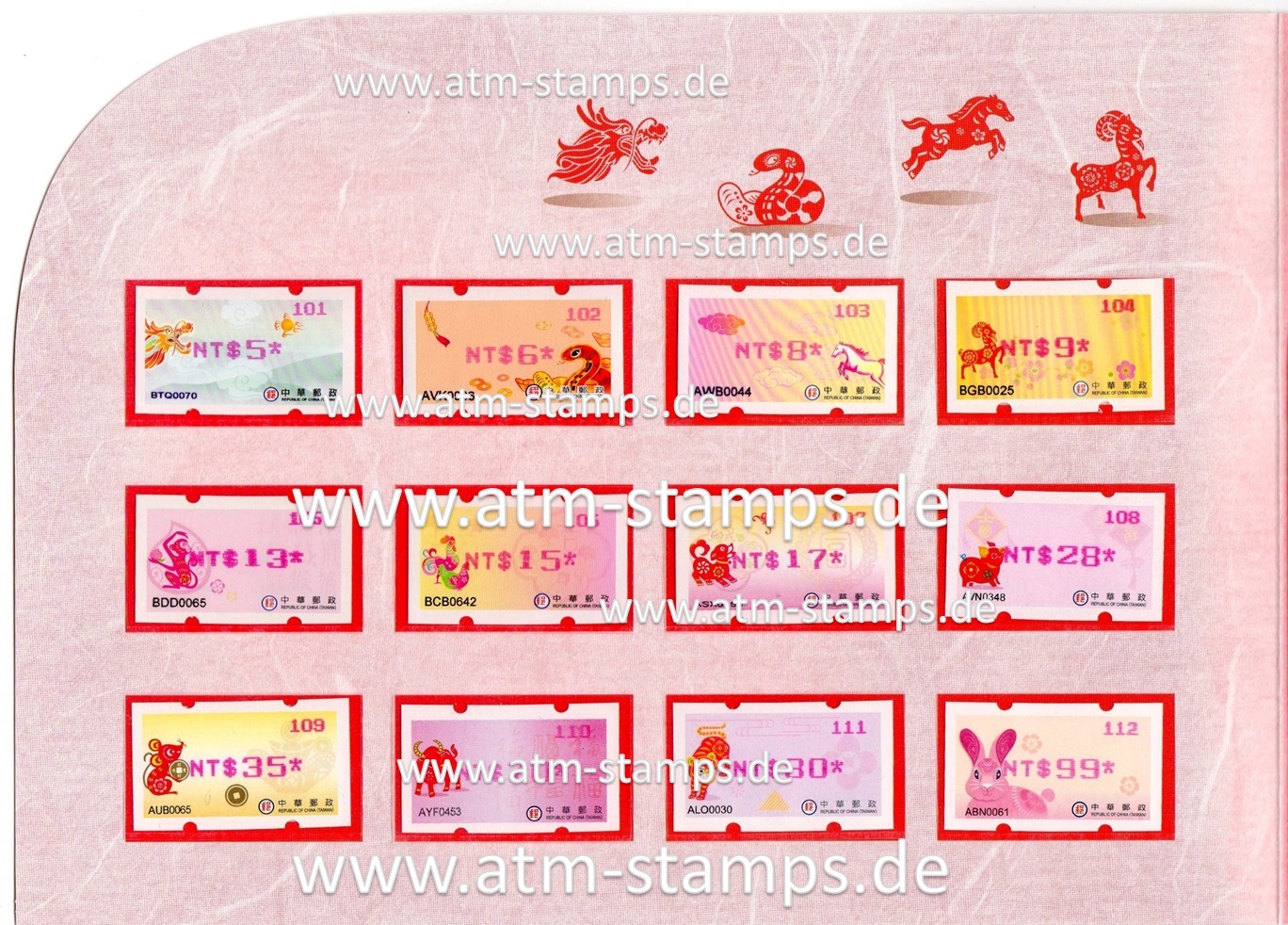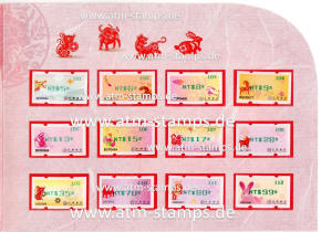 Komplettsammlung alle 12 chinesische Tierkreiszeichen: Werteindruck rot,